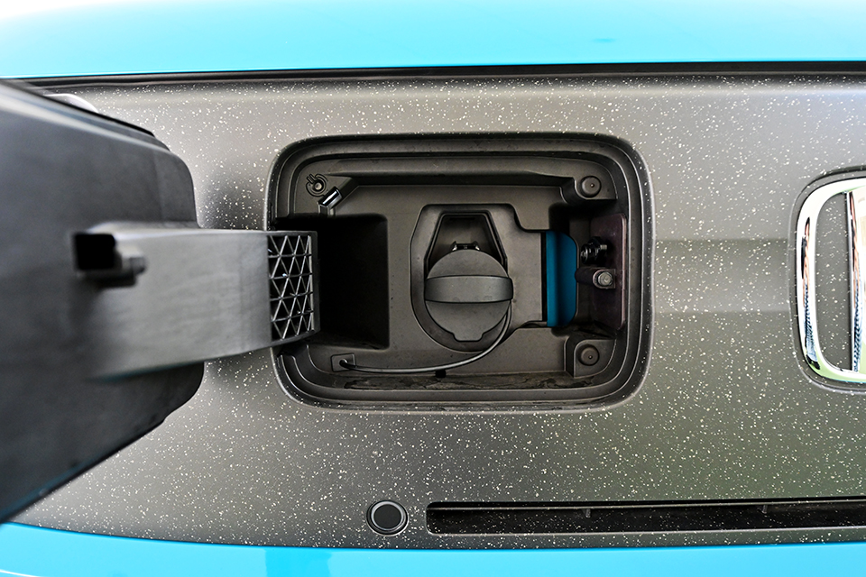 N-ONE e: は、専用コネクターを使えば家電に電気を供給できる外部給電に対応しています。