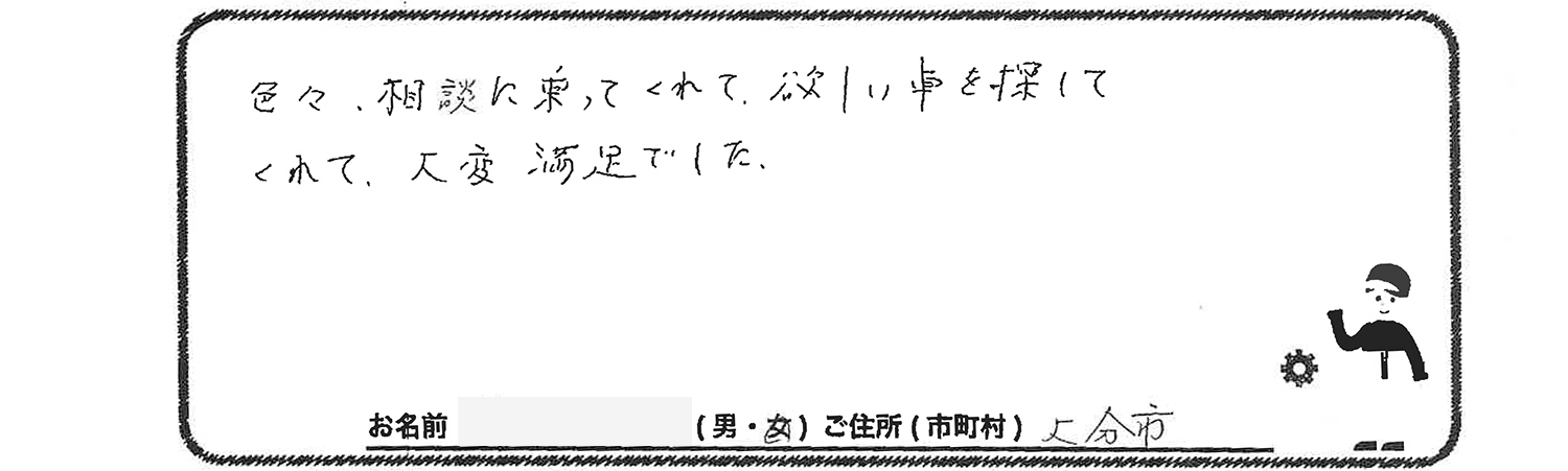 色々相談に乗ってくれて、欲しい車を探してくれて、大変満足でした。